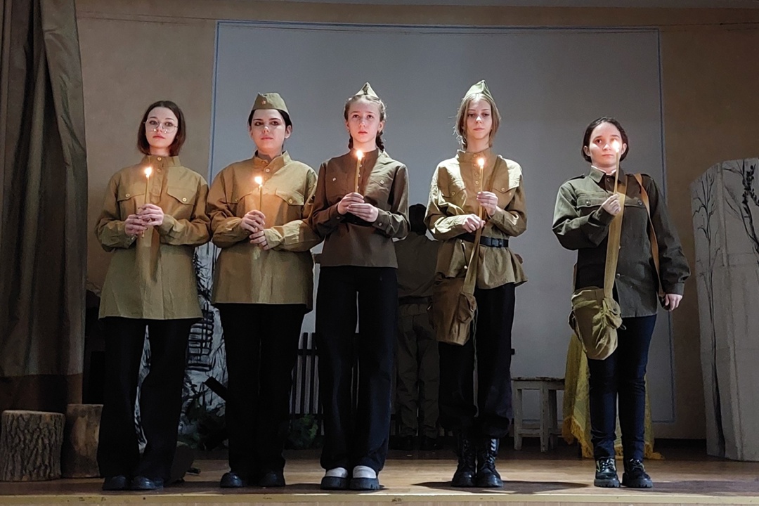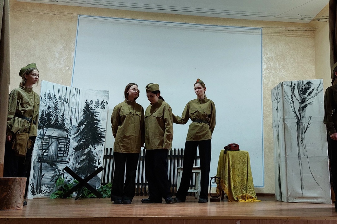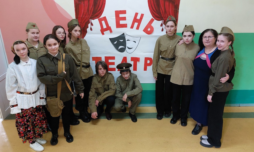 27 марта - Всемирный день театра. Театральное искусство является одним из древнейших искусств в истории, оно вносит большой вклад в культурное развитие общества. А начиная с 1961 года, вот уже более 50 лет, 27 марта все театралы отмечают профессиональный праздник. В этот день в МБОУ "ЯСШЛ №9" состоялась премьера новой театральной постановки "Театра на Московской" (режиссер - Кузнецова А.И.) по произведению Б. Л. Васильева "А зори здесь тихие". Постановка рассказывает зрителям о том, как зенитчицы совершают подвиг во время Великой Отечественной войны.Артисты смогли прочувствовать трудности военного времени и героизм советских людей, передать свои эмоции зрителям.